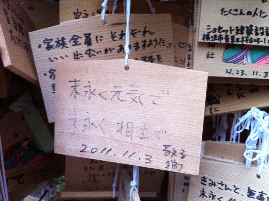 同行友人小飛柔很神祕的把她許願的繪馬掛上去,我們都不知道她到底許了什麼願望。
