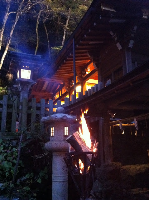 在山上天很快就黑了,神社燃起了柴薪。既溫暖又明亮。