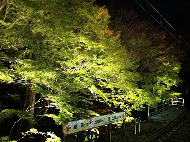 我們搭的是往貴船的賞楓列車,這列車最大的賣點就是它有賞楓席,只是限量是殘酷的,往返的兩趟我們都沒搶到任何一席,這賞楓席根本就是秒殺。