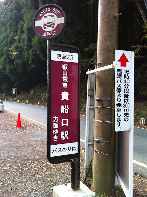 然後電車抵達貴船口驛之後有接駁公車可以搭,不過這接駁公車是季節性的,只有賞楓季節才有。因為我們買的KANSAI THRU PASS可以搭乘關西除JR及幾條特定路線或範圍的公車之外的所有私鐵、公車,所以當然就搭公車省腳力囉。