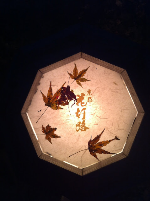 路邊的花燈,點綴上片片紅葉,霎時間增色不少,連單調的花燈都浪漫起來。