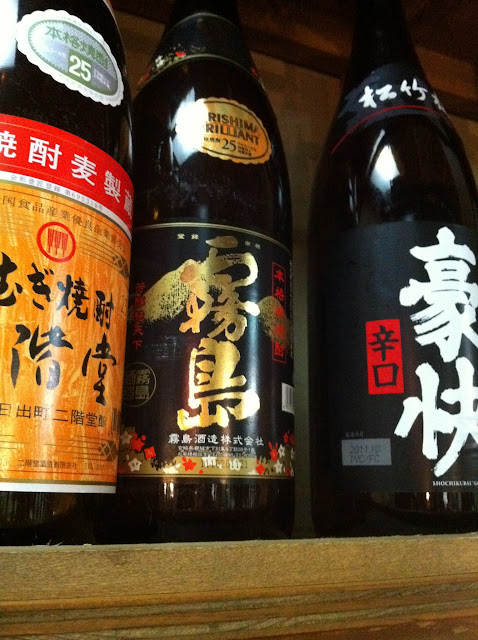 在等待帶位的時候,有人把中間那瓶名為霧島的酒叫成露鳥,我把這件事情貼上Facebook後得到了很精彩的回應「那左邊那瓶不就叫隋堂」流氓如是說。