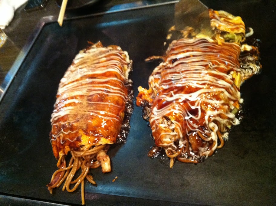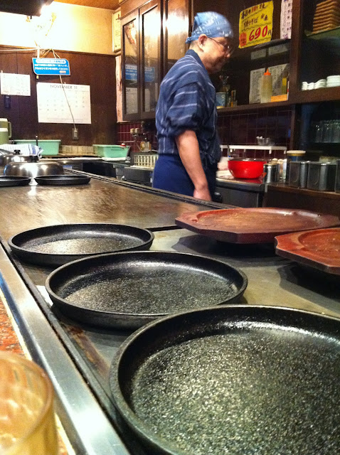 店名叫ぼん蔵,老闆是個大叔,很俐落的在鐵板上料理出我們的午餐。