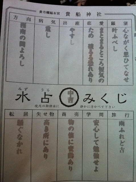 占卜後的籤詩。完全看不懂,不過是中吉我就很開心了。 XD