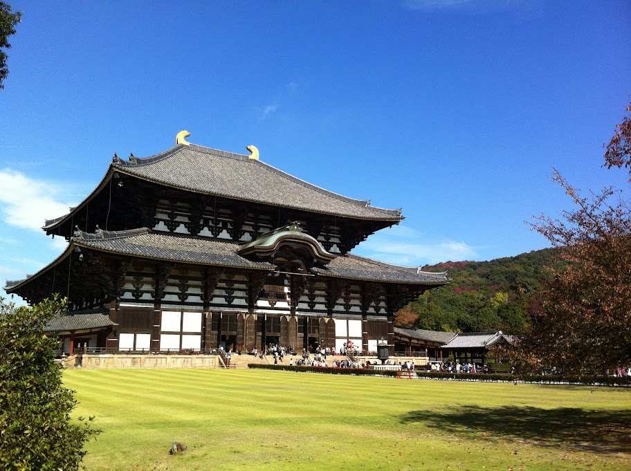 這是東大寺的大佛殿,又稱金堂。天藍的讓人心曠神怡,搭配上如茵綠草,真是美麗的景致。