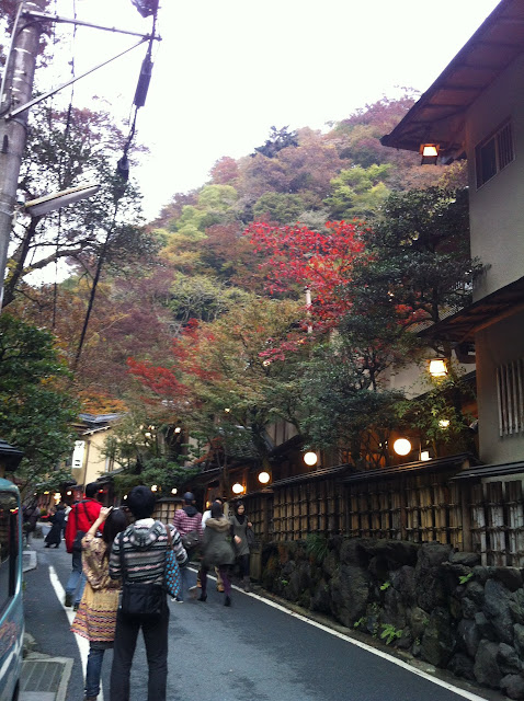 沿路都是如此優美的景色,紅黃綠相間的山麓,搭配上日式風格建築點綴其中。