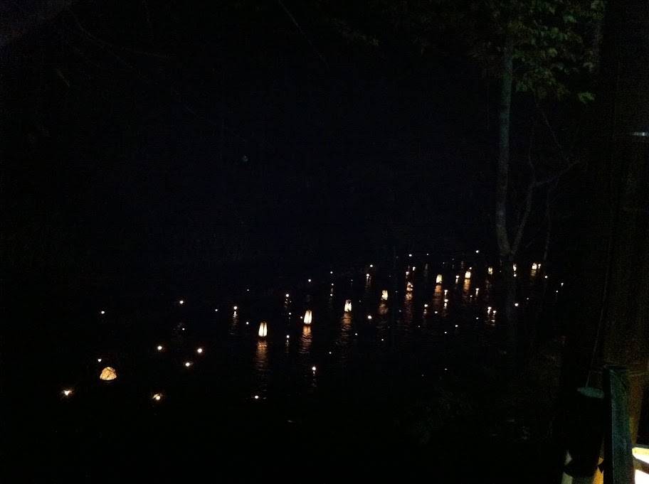 回程時,剛剛放置在河床上的花燈亮了起來,宛如小小的銀河般璀璨絢麗。