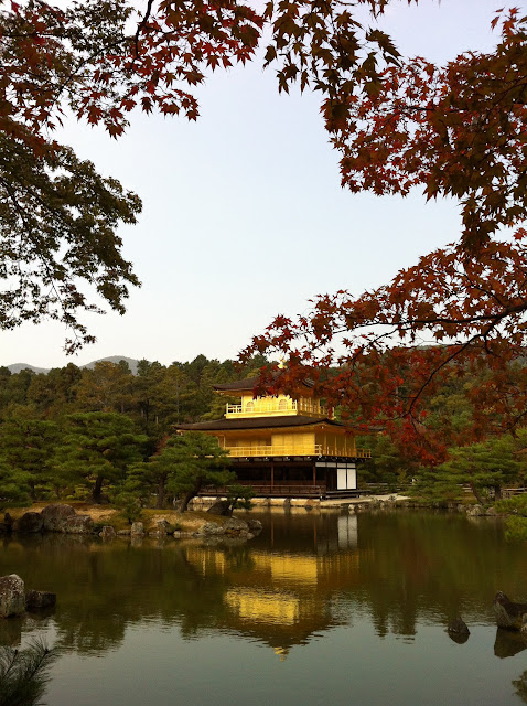 不同季節的金閣寺,有不同的美麗。上次來是二月底,乍暖還寒,櫻花還沒開,梅花正盛,不過金閣寺沒有梅花,哈哈。