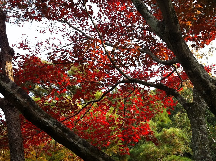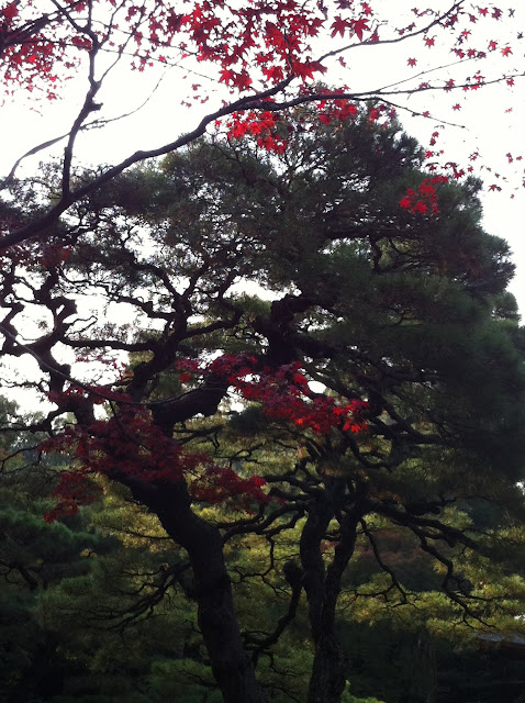 離開二條城之前,在庭院裡看到了極稀有的楓紅。