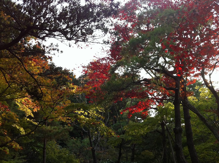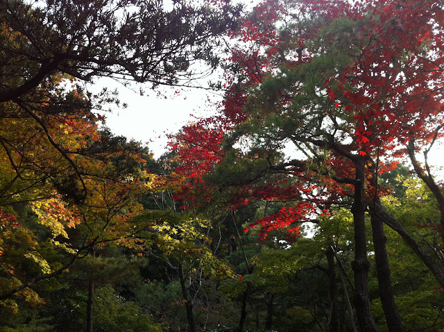 熟悉的參道。石子聲沙沙作響,兩邊楓樹紅似火,遊客絡繹不絕。還有很多在拍照時一直插隊的中國旅行團。