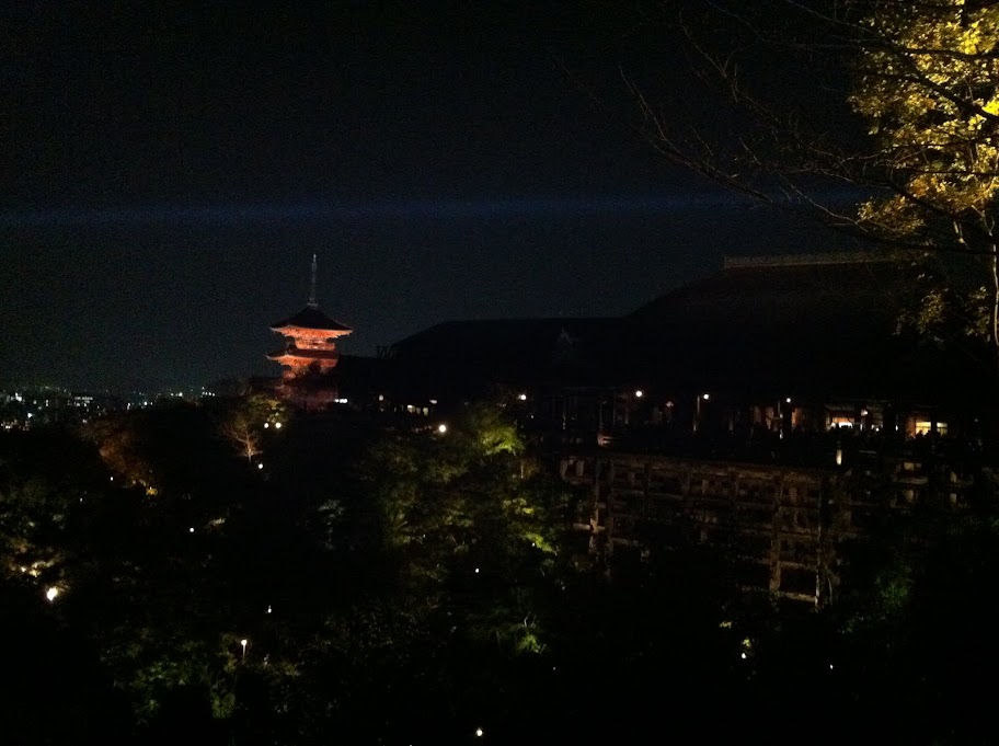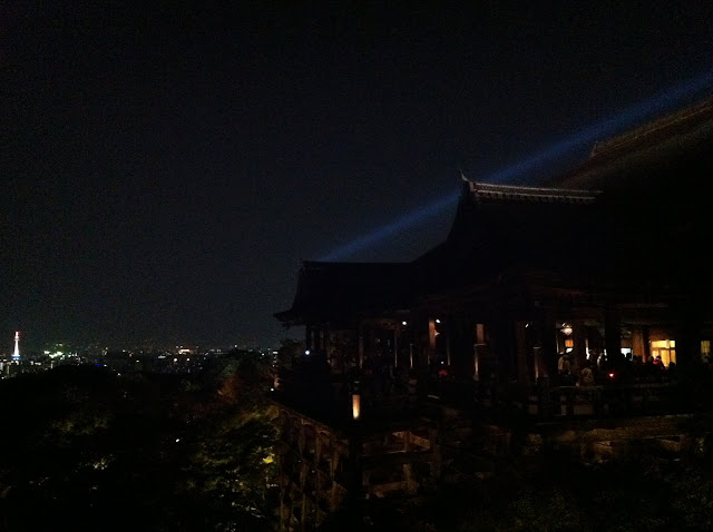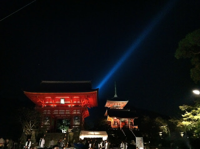 從二寧坂一路晃到清水寺,遠遠就看到一束光線直射天際。