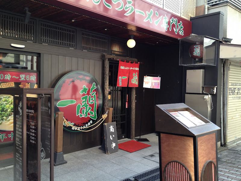 朋友選完袋子之後,我們在附近搭上了公車要前往祇園,應該是三到四站的距離吧,在等公車的時候就看到許多消防車跟救護車不斷的呼嘯而過,那時我在想是哪裡發生火災了嗎?似乎很嚴重。之後搭上公車,才到八坂神社前,就看到祇園那條路交通管制,所有人車禁止通行,這時我還不知道發生什麼事情。於是乎就下車開始步行,我們的目的地是四條河原町附近的一蘭拉麵。來看地圖比較清楚。