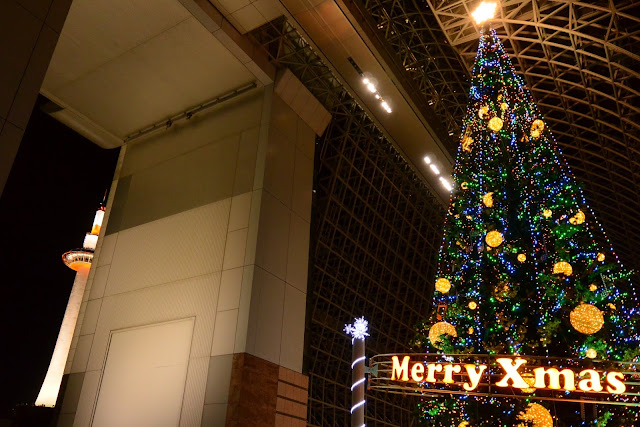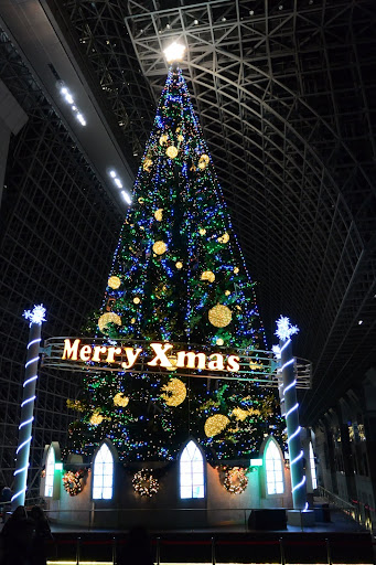 看完噴泉進到京都車站等著我們的是京都車站的超大聖誕樹還有LED燈飾。