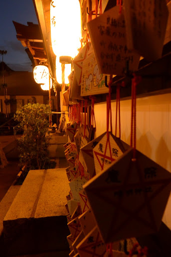 我們抵達晴明神社時已經是天黑時刻,雖然大概是下午五點多接近六點時,但是已經進入黑夜,搭配上神社微黃的燈火,的確有種神秘感。彷彿隨時會有什麼惡靈出沒,然後晴明會出來收服惡靈那樣的感覺,科科,不過這些當然都是我個人的幻想而已。