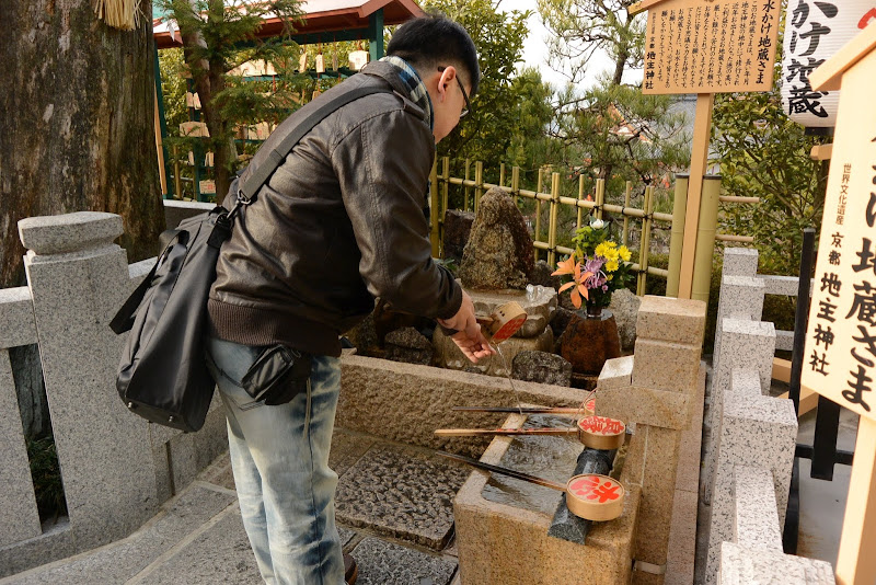 離開清水寺後,順路來到旁邊的地主神社,雖然來過清水寺多次,可是從來沒有進來地主神社參拜過,這次三個阿宅特地進來這裡祈求良緣。而我,只是純粹來記錄三個宅男的攝影師而已。