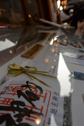 此外,神社裡有對「戀愛占卜石」,自日本繩紋時代流傳至今。「戀愛占卜石」彼此相距10公尺,相傳若能閉著眼睛從一邊的石頭走到另外一邊,兩人的戀愛便會如願以償;要是花了點時間才能到達對面,則這段緣份也會花點時間才到;若必須由朋友在旁提示才到達,意思要靠他人才能得良緣。日本室町時代的作品「清水寺參拜曼陀羅」中曾有相關情境描述,可見歷史之悠久。此外,地主神社的神籤的數目是日本第一,護身符的種類也很豐富,是這裡另一特色。