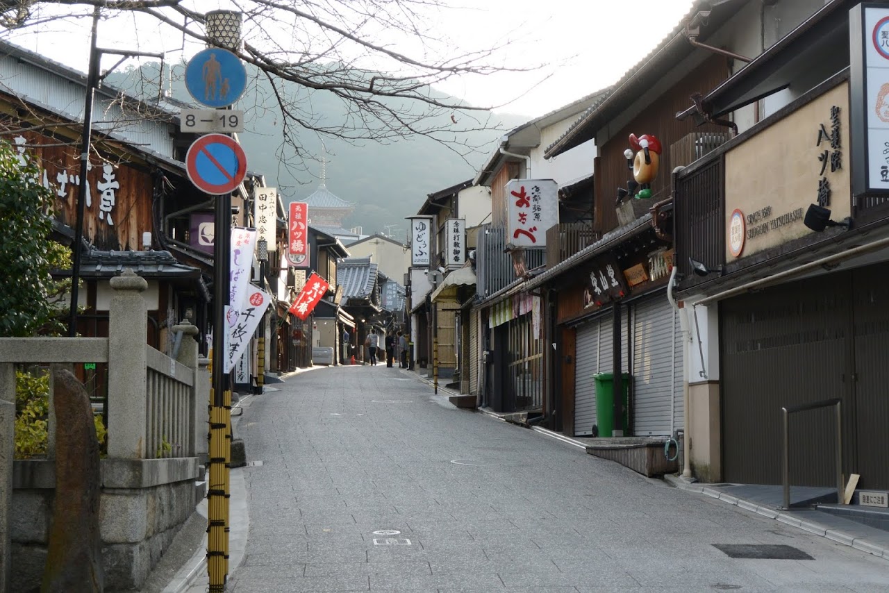 離開清水寺,延著清水道往下走來到三年坂、二年坂。遊客不多,店家已經開始開門營業,正是可以細細品味二年坂三年坂的好機會。